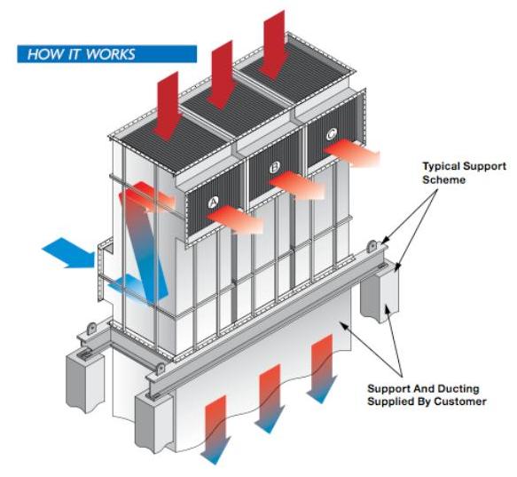 There are many types and designs of air preheaters, however, MECS offers either non-welded or fully welded construction and specializes in dimpled heat transfer plate design. MECS air preheaters are constructed of stacked, parallel plates that provide a smooth, continuous path for the least pressure drop or flow resistance. The combination of raised and depressed conical dimples provides uniform plate pitch and an improved heat transfer coefficient. In the MECS design, the flow path for the heated gas is commonly Z-shaped and countercurrent to the cold gas resulting in longer residence time and maximum heat transfer - MECS-ThermoZ Welded and OCAP Non-Welded Plate Air Preheaters, Monplex II Gas to Gas Heat Exchangers.